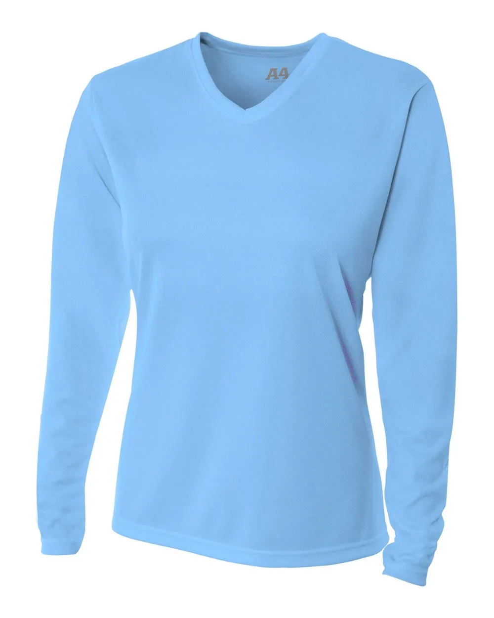 A4 Womens Long Sleeve V Neck Birds Eye Mesh Tee Volleyball Top