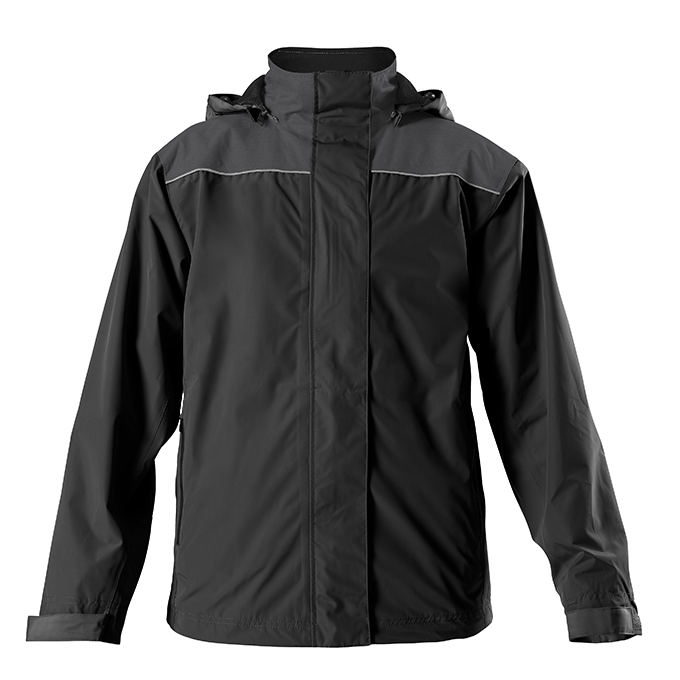 Durable waterproof full-front zipper jacket with all seams sealed for harsh weather conditions