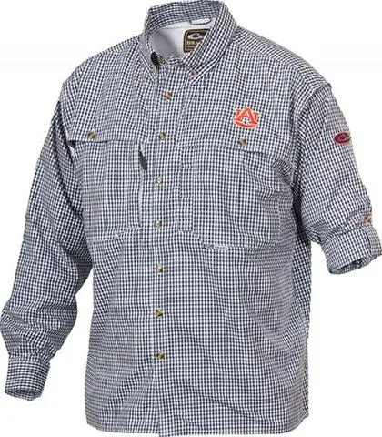 Perfect for a day outdoors or a casual day in the office, the Wingshooter’s Shirt is breathable, cool, and quick-drying. Classic seven button design also has front and back ventilation to keep you cool and manage moisture in warm weather, and an extended stand-up collar for sun protection on long days outdoors. Drake added roll-up tabs on this long-sleeve shirt to keep your sleeves secure when you want to roll them up. Features Auburn logo embroidered on left chest.